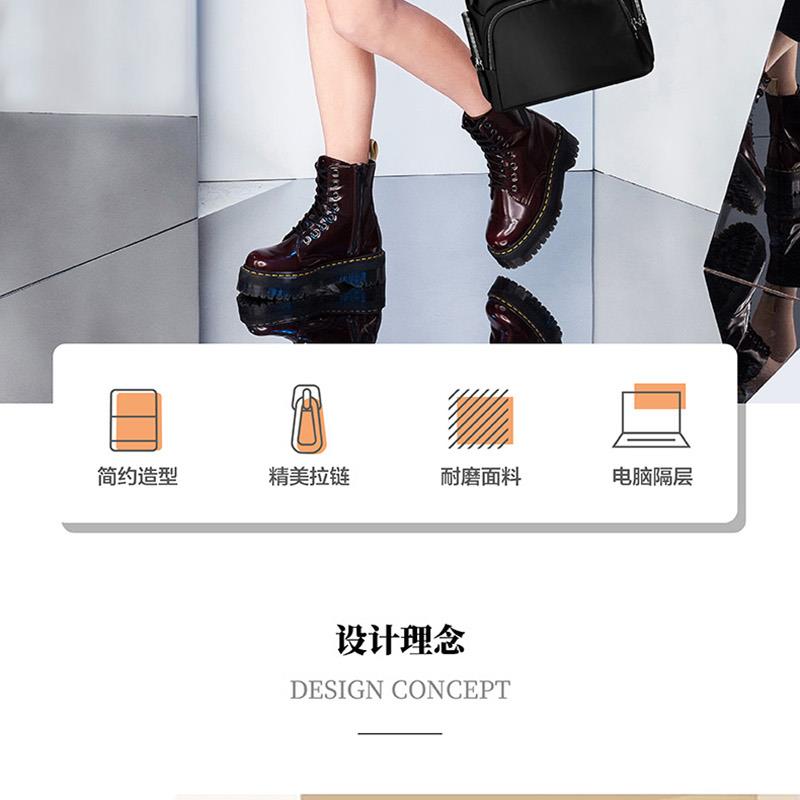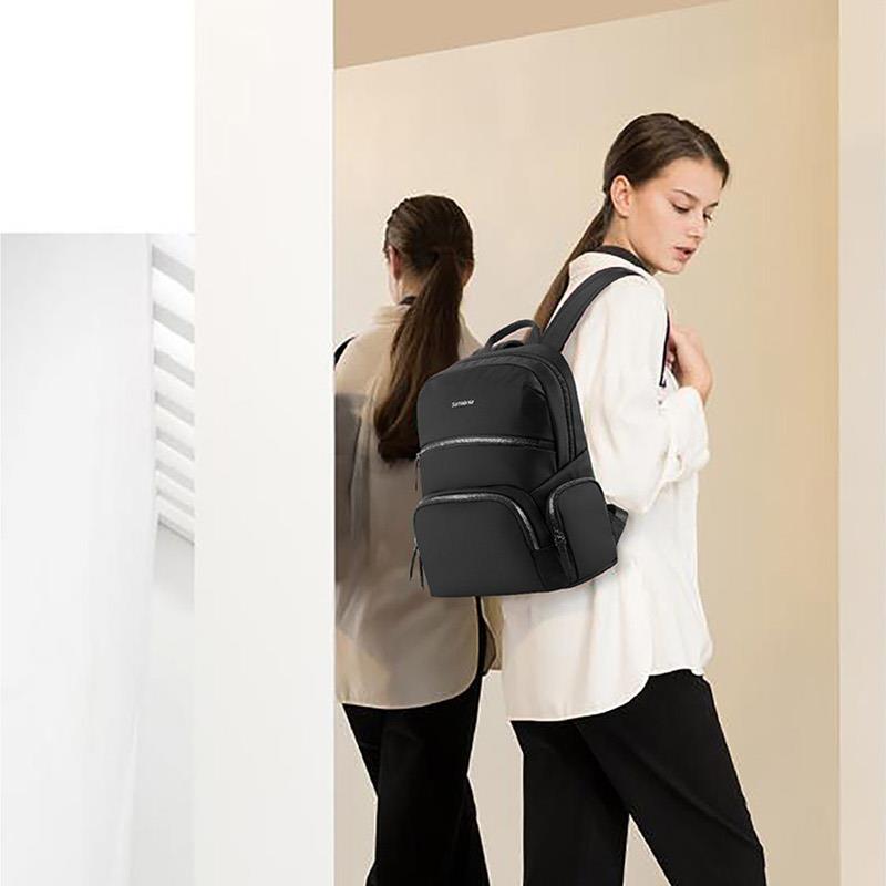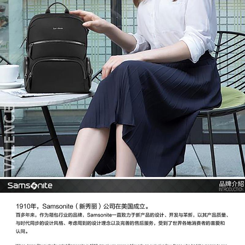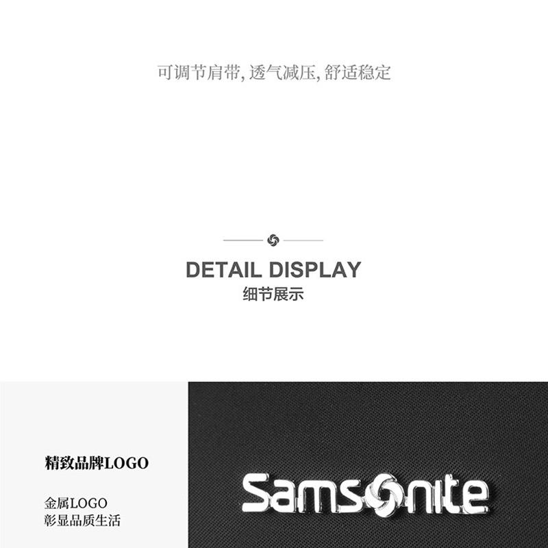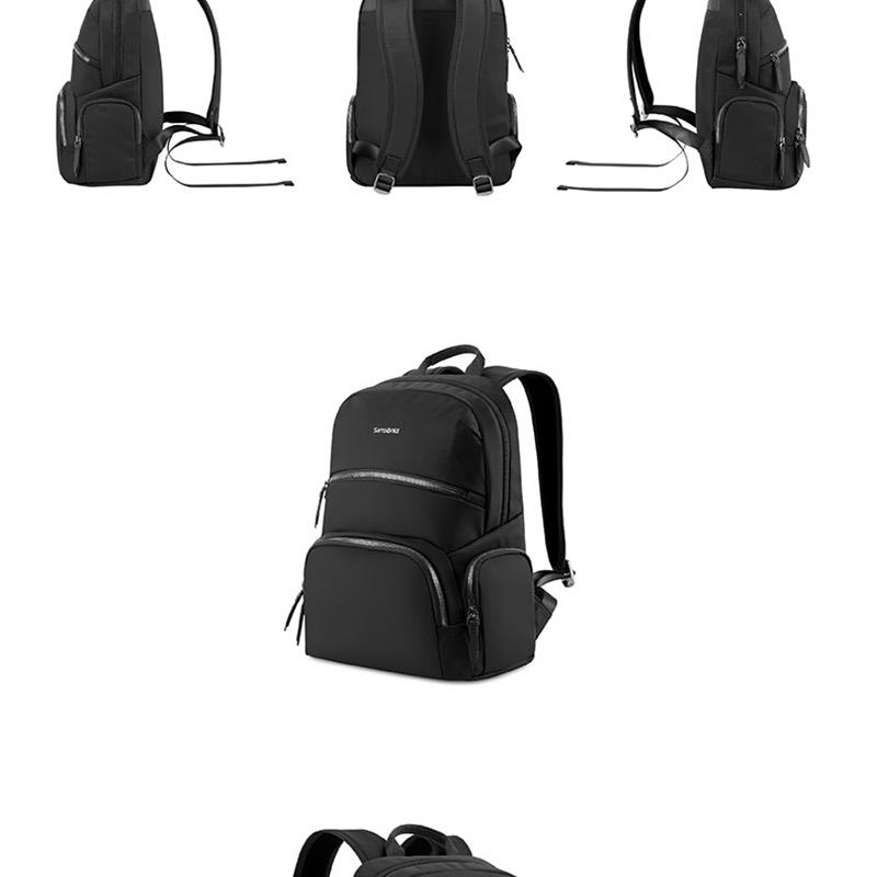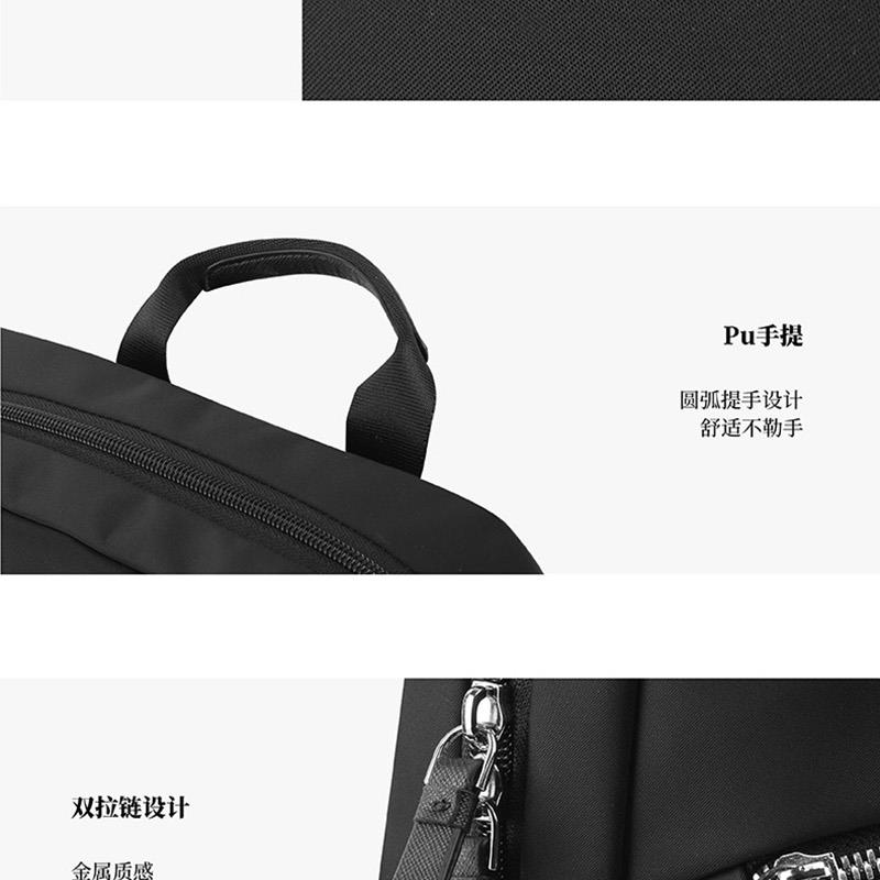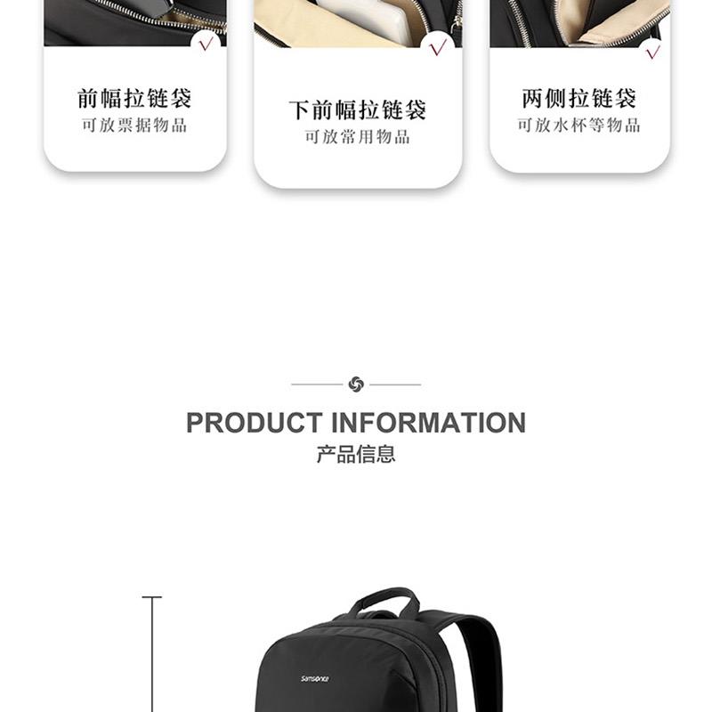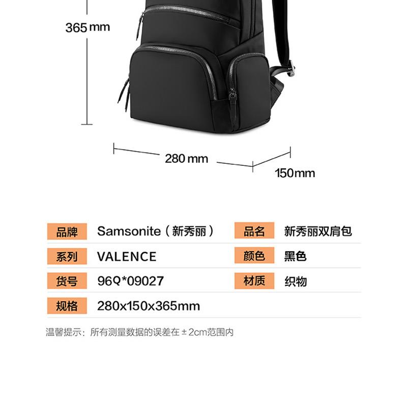 系列: VALENCE 產品材質:織物+聚氨酯(PU)革 產品尺寸:280×365×150mm 裝箱明細:6pcs/箱 前幅多口袋:方便拿取物件,可放置充電寶、手機、票據等隨身物品 主袋設置電腦倉,平板倉,多隔層文組分區,大容量生活倉 兩側側口袋,可放置水杯等隨身物品。 金屬LOGO,彰顯品質;雙拉鏈設計,實用便捷;PU提手,舒適不勒手 肩帶:透氣減壓,舒適穩定