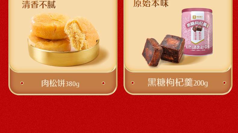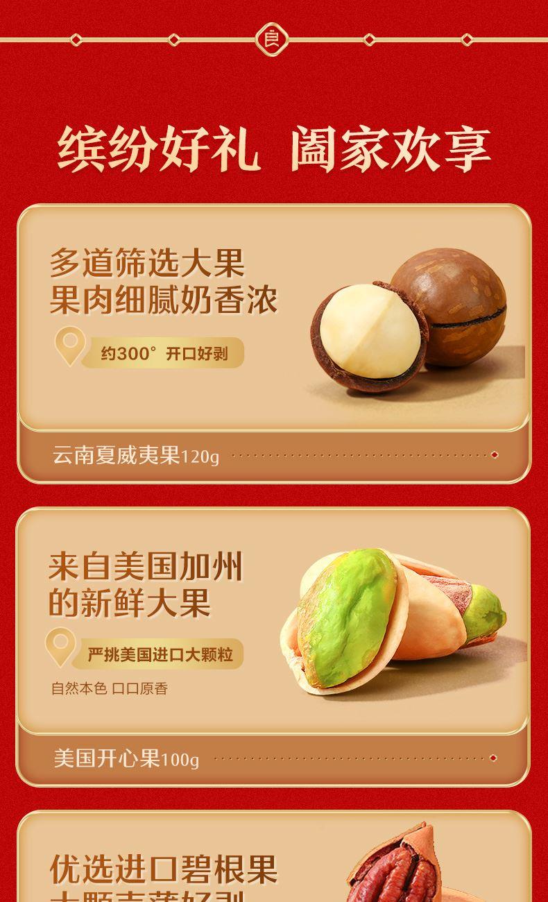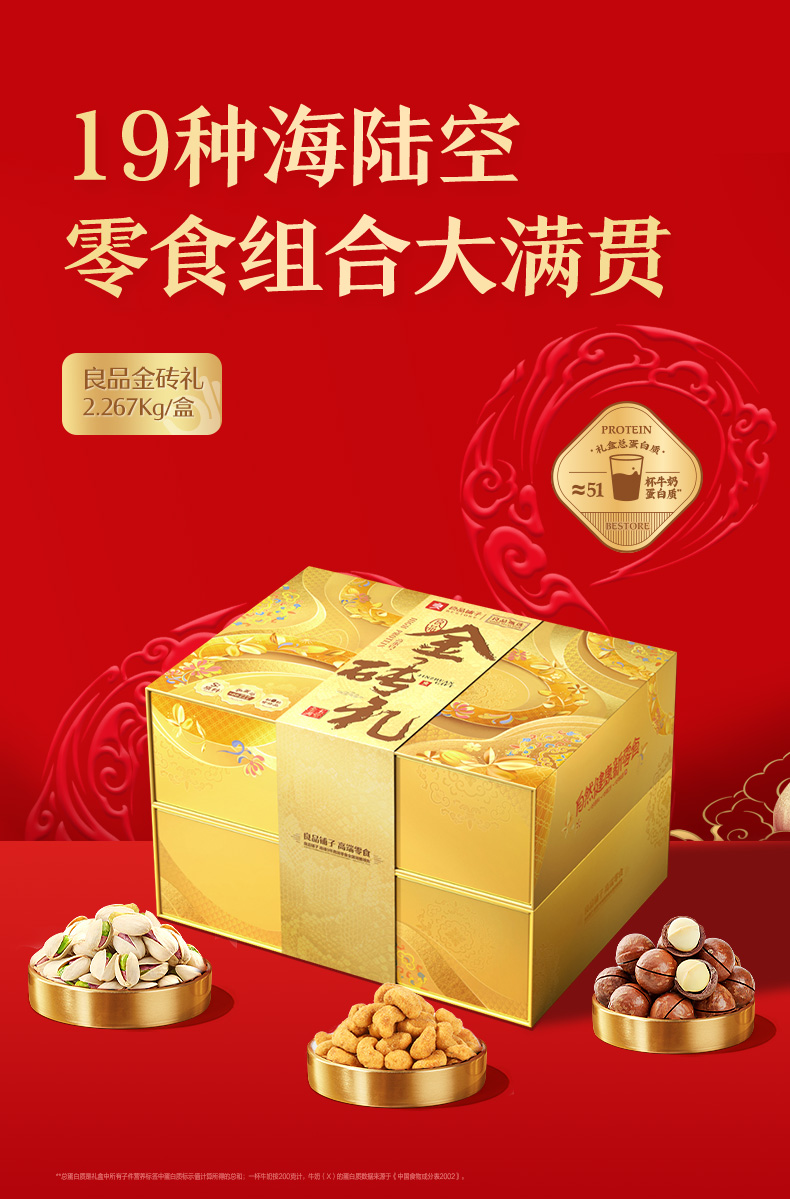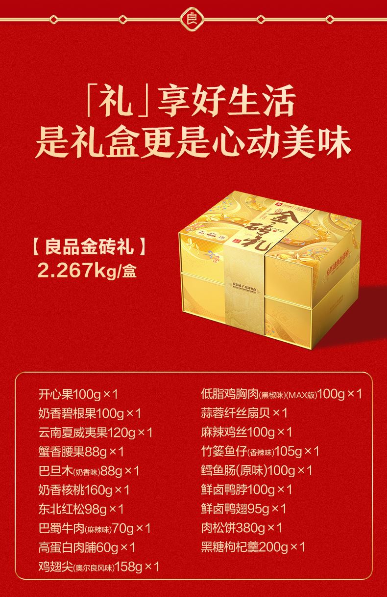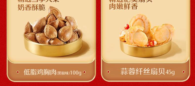 開心果100g 奶香碧根果100g 云南夏威夷果120g 蟹香腰果88g 巴旦木(奶香味)88g 奶香核桃160g 東北紅松98g 巴蜀牛肉(麻辣味)70g 高蛋白肉脯60g 雞翅尖(奧爾良風味)158g 低脂雞胸肉(黑椒味)(MAX版)100g 蒜蓉纖絲扇貝45g 麻辣雞絲100g 竹簍魚仔(香辣味)105g 鱈魚腸(原味)100g 鮮鹵鴨脖100g 鮮鹵鴨翅95g 肉松餅380g 黑糖枸杞羹200g